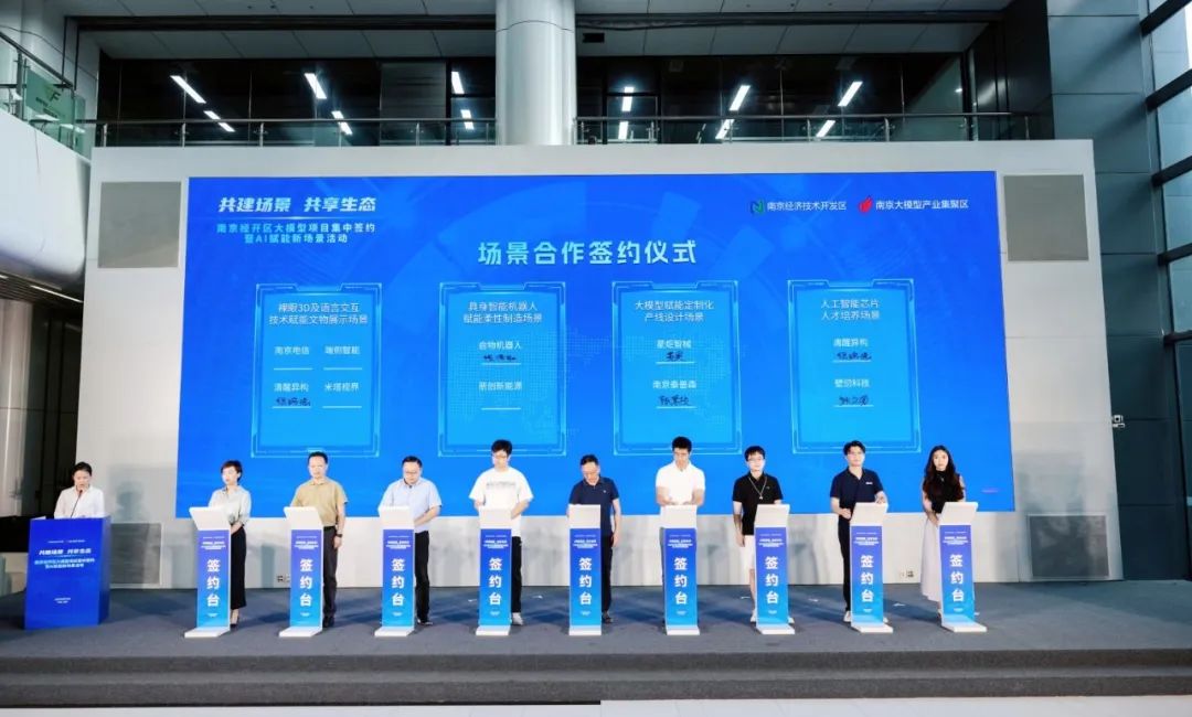 围绕“AI+文旅”“AI+制造”“AI+产线设计”“AI+教育”四大应用场景,新签约企业与南京电信、泰普森自动化等宁企达成6项合作,涵盖裸眼3D及语言交互技术赋能文物展示、具身智能机器人赋能柔性制造、大模型赋能定制化制造产线设计、人工智能芯片人才培养等重点方向。“落地即合作,签约即获订单”,充分展现了新签约企业出色的技术实力,更得益于园区推进“产模融合、场景驱动”创造的良好创新生态和广阔市场机遇。